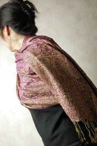 カシミール風のジャカード ショール(ストール、スカーフ)インド製 【アジアン】【代引き手数料無料!】【02P09Dec09】【モダンエスニック】【数量限定】【レディース・ファッション】【メール便OK】