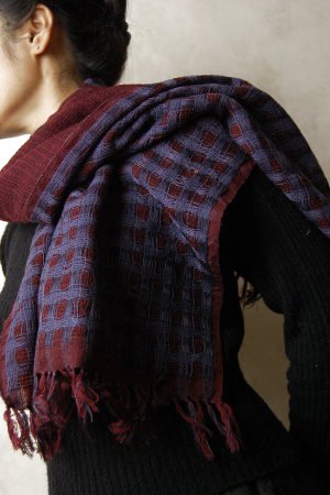 オーストラリア産ウールをインドの工房で織り上げた程よい大きさのストールサイズ。多くの色糸の微妙な組み合わせがとても深く豊かな色合いを作り出しています。二重構造をもつ独特の織り方で肌にやさしい柔らかさと軽さを備え、チェック模様がとってもおしゃれ☆ 他のデザインを見る!※お洗濯は必ずウール/お洒落着用の中性洗剤を使ってください。※ご心配な方はドライクリーニングに出して下さい。詳しくはこちら ■サイズ:50cm×160cm(フリンジ含まず) ■素材:羊毛100%(オーストラリア製) ■原産地:インド